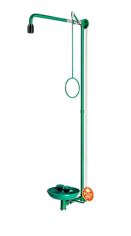 - Hätäsuihkuyhdistelmässä yhdistyvät vartalon hätäsuihku, silmäsuihku ja seinään kiinnitettävä keräysallas.