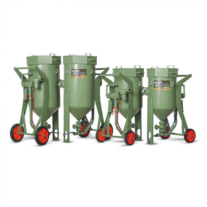 - Hiekkapuhallus BlastRazor Z-200 RCS, 200 l säiliö, seula, kansi, vedenerotin CAF-3, kauko-ohjausventtiili RCV, kauko-ohjainvipu DMH, annosteluventtiili metallisille hioma-aineille SGV, kaksoisletku RC TWINLINE 20 m, liitäntäsarja kauko-ohjausletkulle.