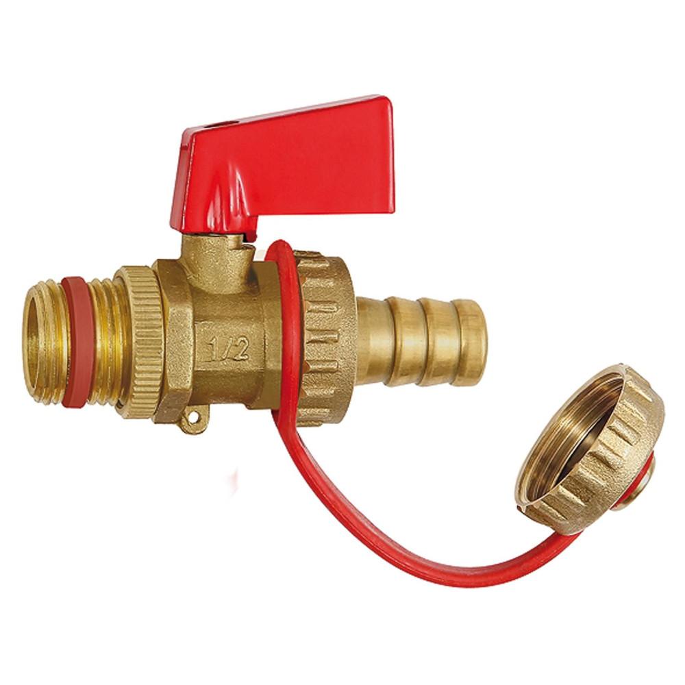 - KFE-palloventtiili on valmistettu paljaasta messingistä ja siinä on G 1/2" -liitäntäkierre ja letkuliitin LW 13 -letkulle.