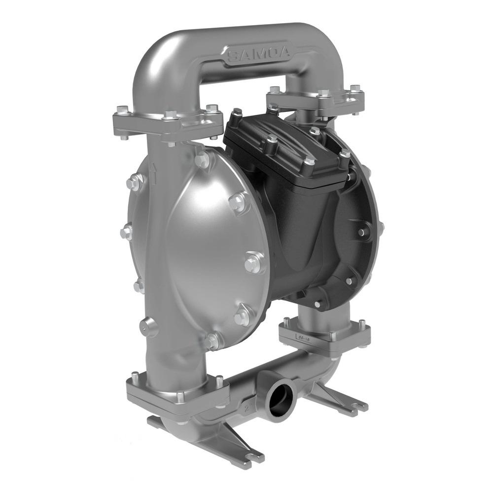 - Valetusta metallista valmistettu 2 tuuman (51 mm) paineilmakäyttöinen kaksoiskalvopumppu saavuttaa jopa 650 l/min (172 gal/min) virtausnopeuden ja tarjoaa laajan valikoiman materiaaleja ja liitäntäkokonaisuuksia.