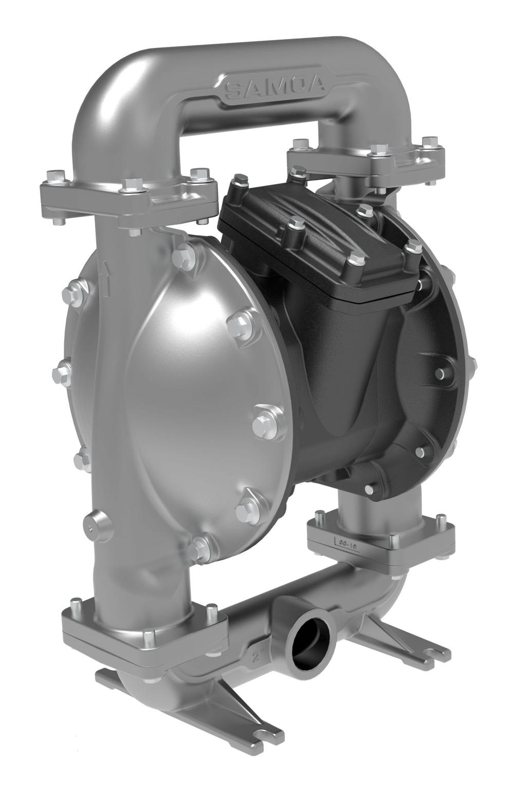 - 2 tuuman (51 mm) paineilmakäyttöinen valumetallista valmistettu kaksoiskalvopumppu saavuttaa jopa 650 l/min (172 gal/min) virtausnopeuden ja tarjoaa laajan valikoiman materiaaleja ja liitäntäkokonaisuuksia.